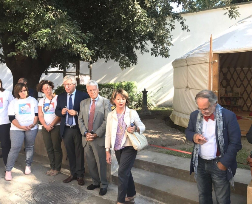 Nisida, 16 settembre 2017 – Inaugurato il punto di lettura permanente presso l’Istituto penale per i minori di Nisida, ospitato in una ampia yurta (abitazione mobile utilizzata da molti popoli nomadi dell’Asia) finanziata con i fondi raccolti con la cena solidale organizzata da Progetto Abbracci che ha visto la partecipazione di ben 6 stelle del panorama gastronomico campano.